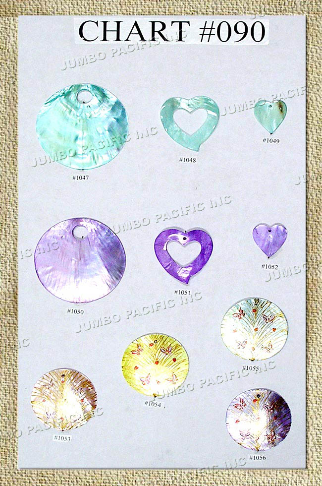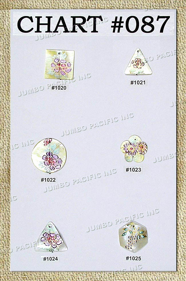Hand printed MOP shells in various designs.